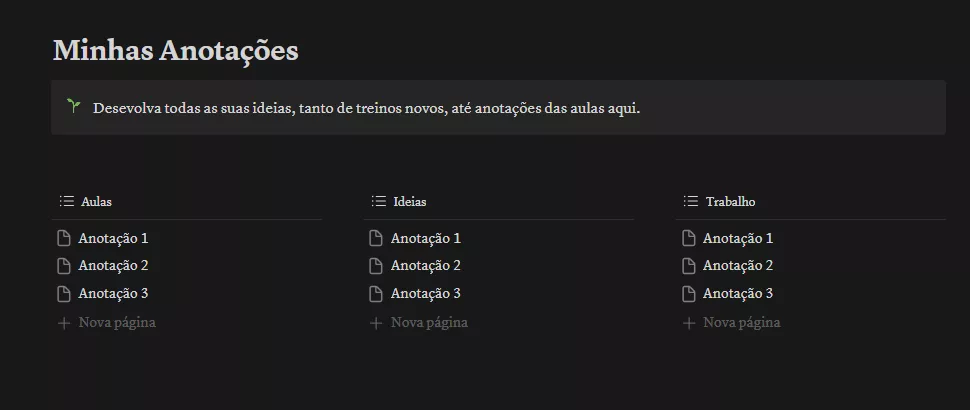 Um template inteligente no Notion para otimizar seus treinos, dieta, estudos e produtividade. Simples, intuitivo e eficaz para quem busca mais disciplina e organização na sua rotina.